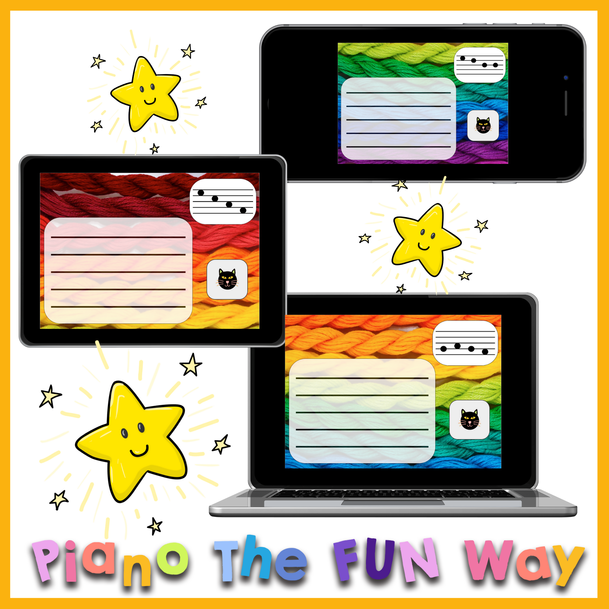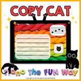 Copy Cat is a beginner-friendly Boom Deck game designed to help students recognize and copy notes on the staff. By matching the "cat notes" with the notes on the card in the upper right hand corner, and placing them on the staff, students can quickly identify patterns and improve their note-reading skills in a fun, straightforward way.